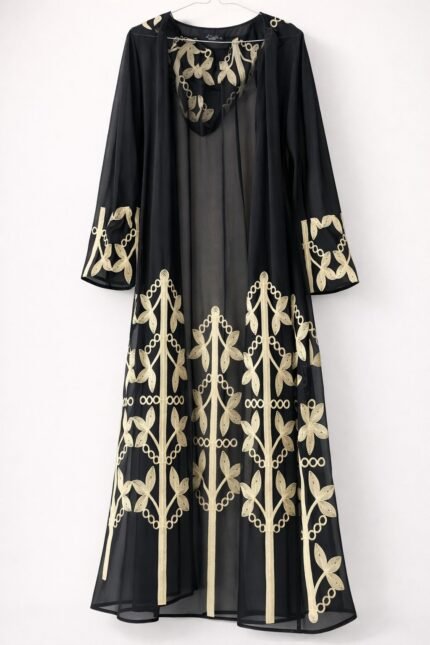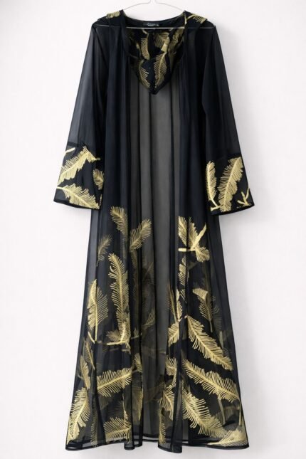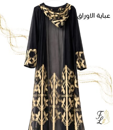 عباية الشيفون الفاخرة بتطريز الأوراق الذهبية الناعمة