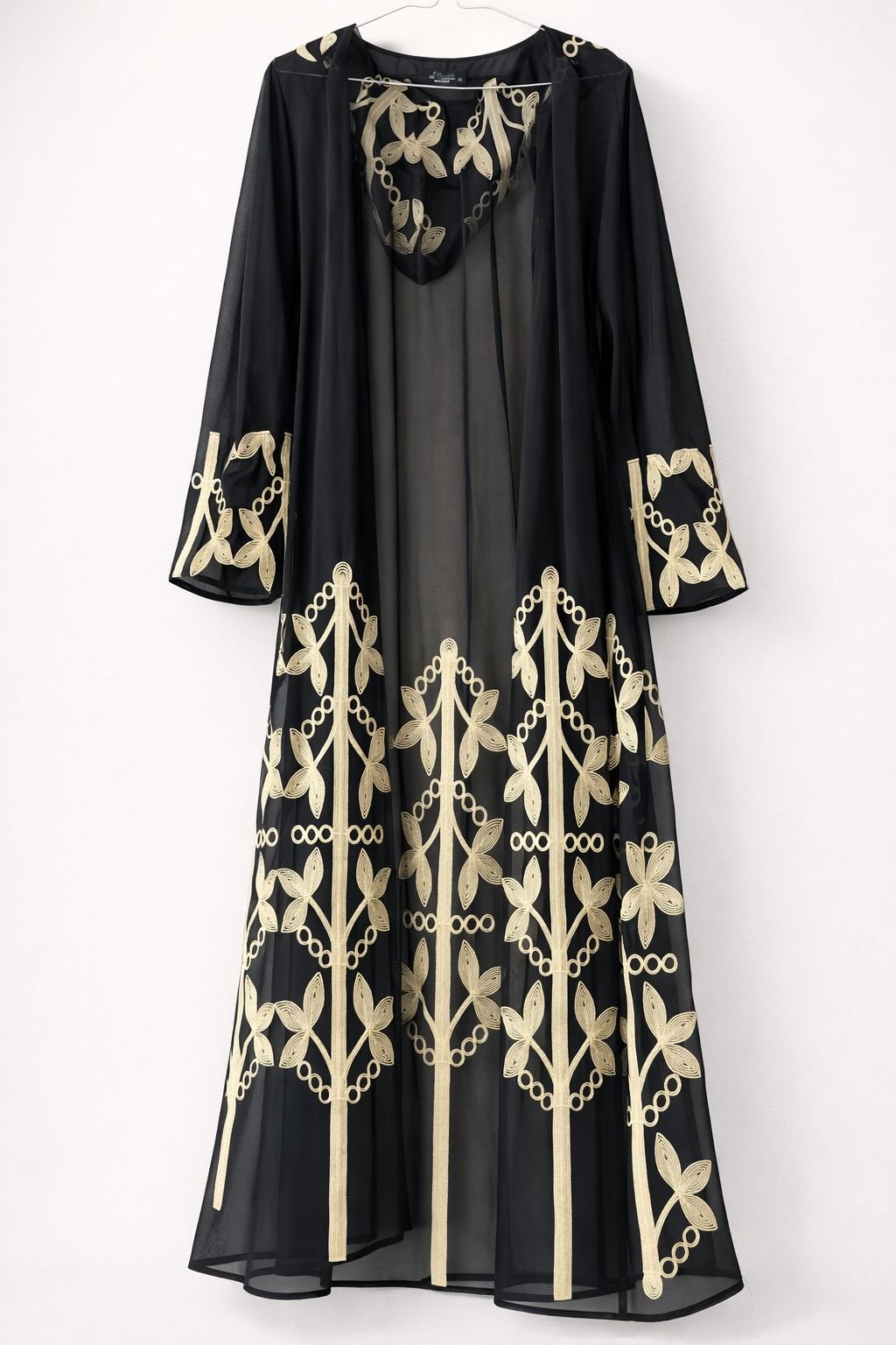 عباية الشيفون الفاخرة بتطريز الأوراق الذهبية الناعمة